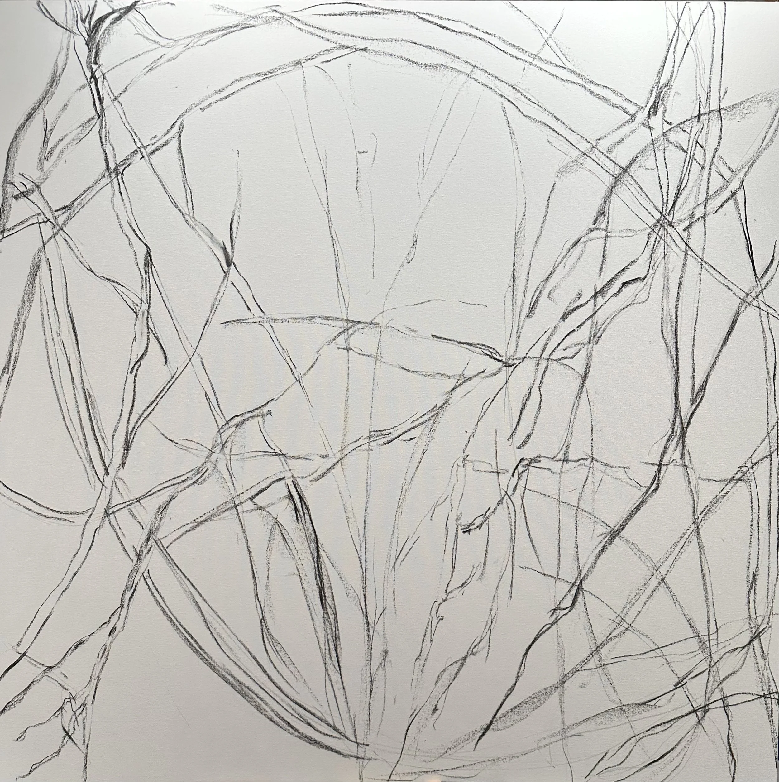 Charcoal drawing on 48 × 48” canvas